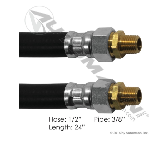 - 1/2in I.D., Rubber, 2 Swivels, 3/8in Pipe, 24in Overall Length