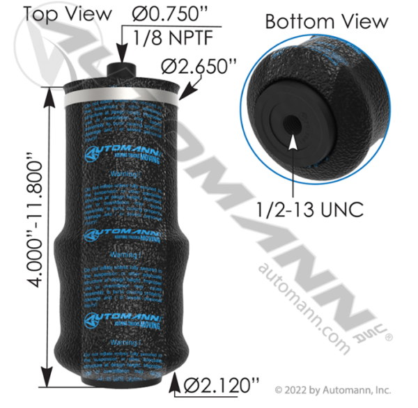 Automann’s cabin air spring is responsible for seating the cabin to the chassis of the vehicle. Designed to offer suspension while driving and superior dampening to improve ride comfortability. Installing a cabin air spring can also help improve vehicle handling and operation. Engineered to meet OEM specification and committed to Keeping Trucks Moving™