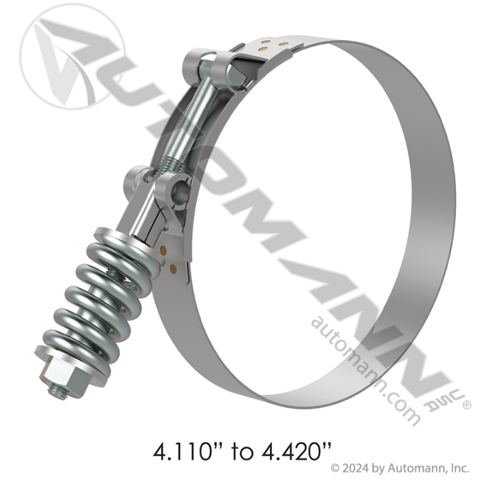 Automann’s Heavy Duty Spring Loaded T-bolt clamp is a reliable clamping. The clamp uses a bolt and a spring to tighten the band and maintain constant pressure. This configuration is great for applications where temperature and pressure fluctuate frequently. The spring aides in keeping a seal on the hose and prevents loose connections.